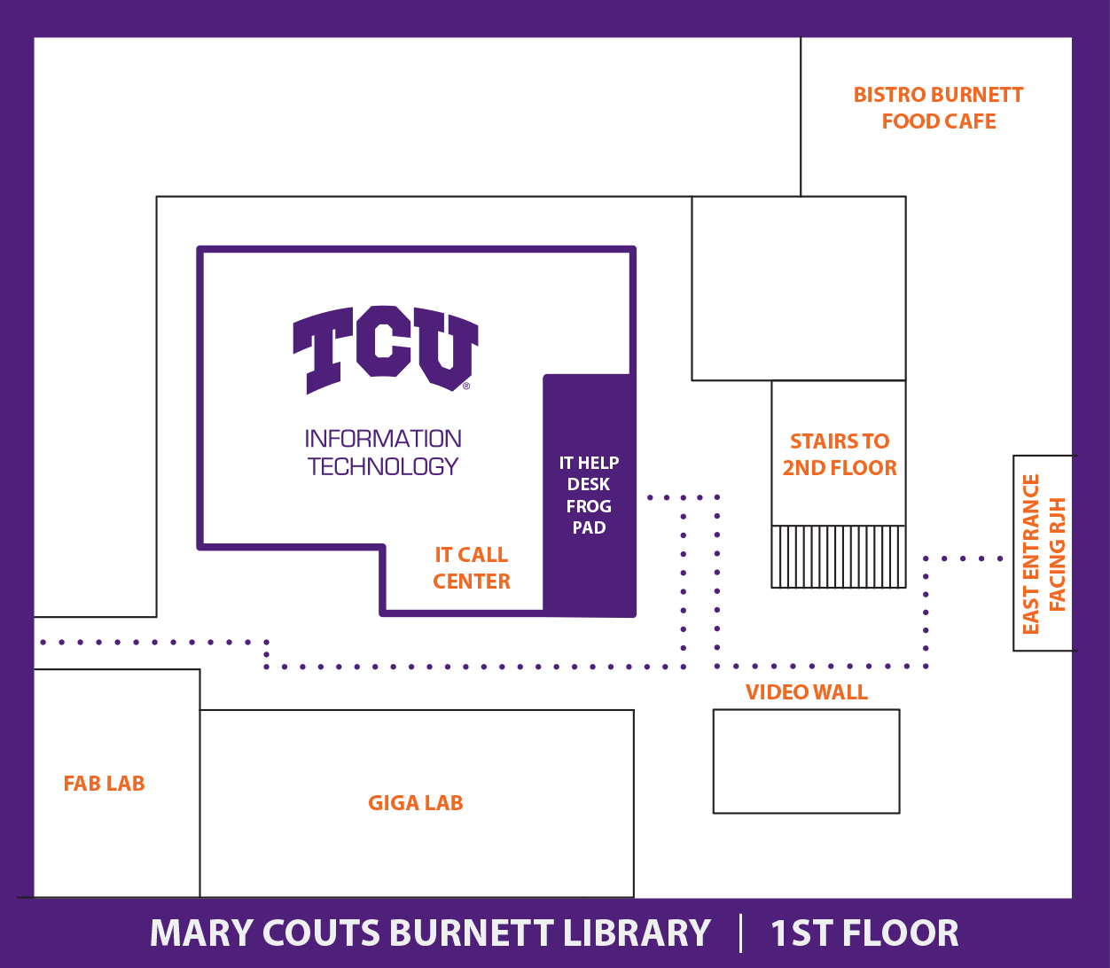 Frog Pad is located on the first floor of the Mary Couts Burnett Library on the East side of the building (next to Rees-Jones Hall).